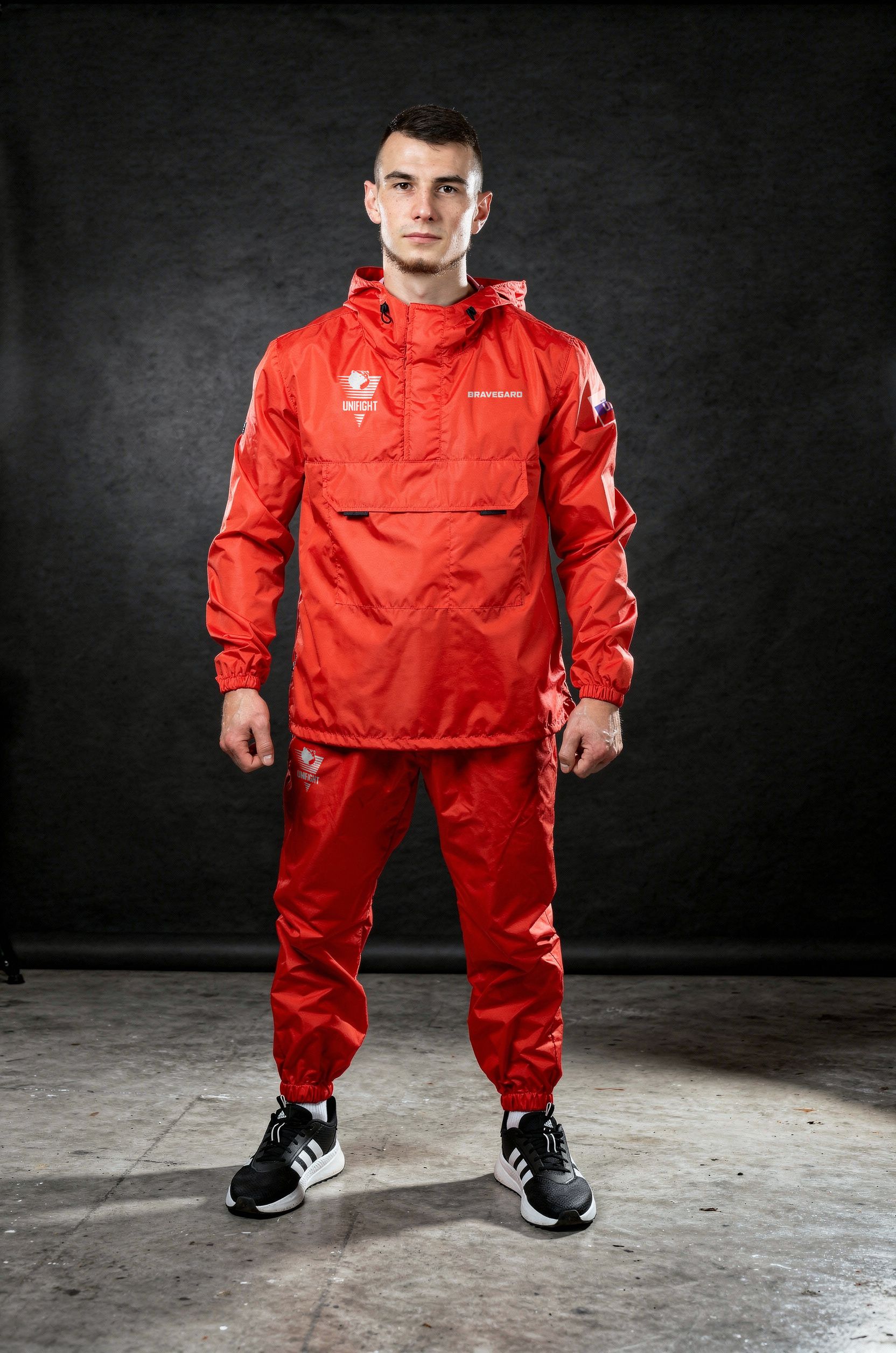 Костюм ветрозащитный BRAVEGARD – это специализированная экипировка для занятий единоборствами, борьбой и кроссфитом на открытом воздухе. Легкий и дышащий костюм из материала дюспо (полиэстер 82 г/м²) надежно защищает от ветра и легкого дождя, обеспечивая полную свободу движений.
